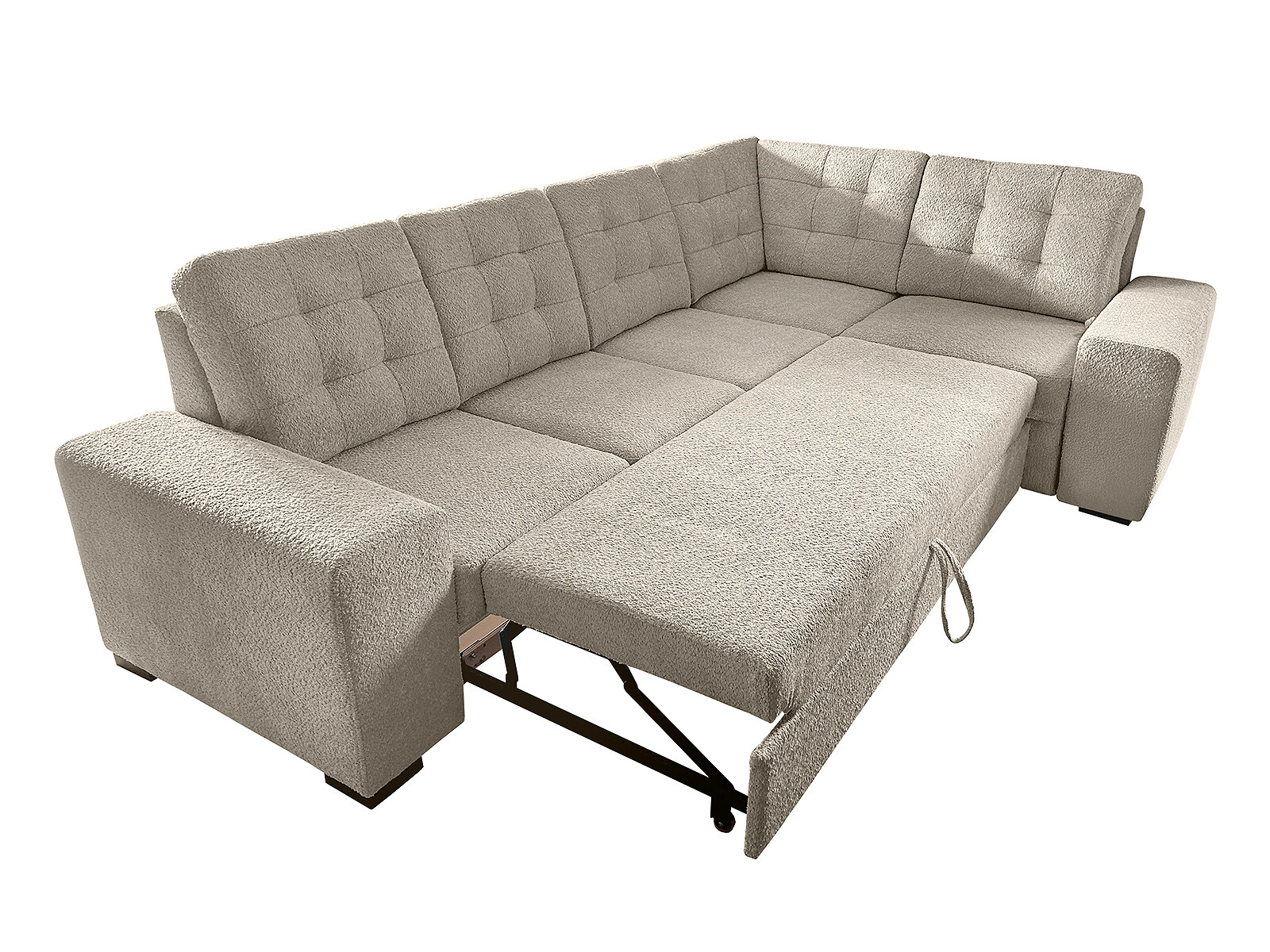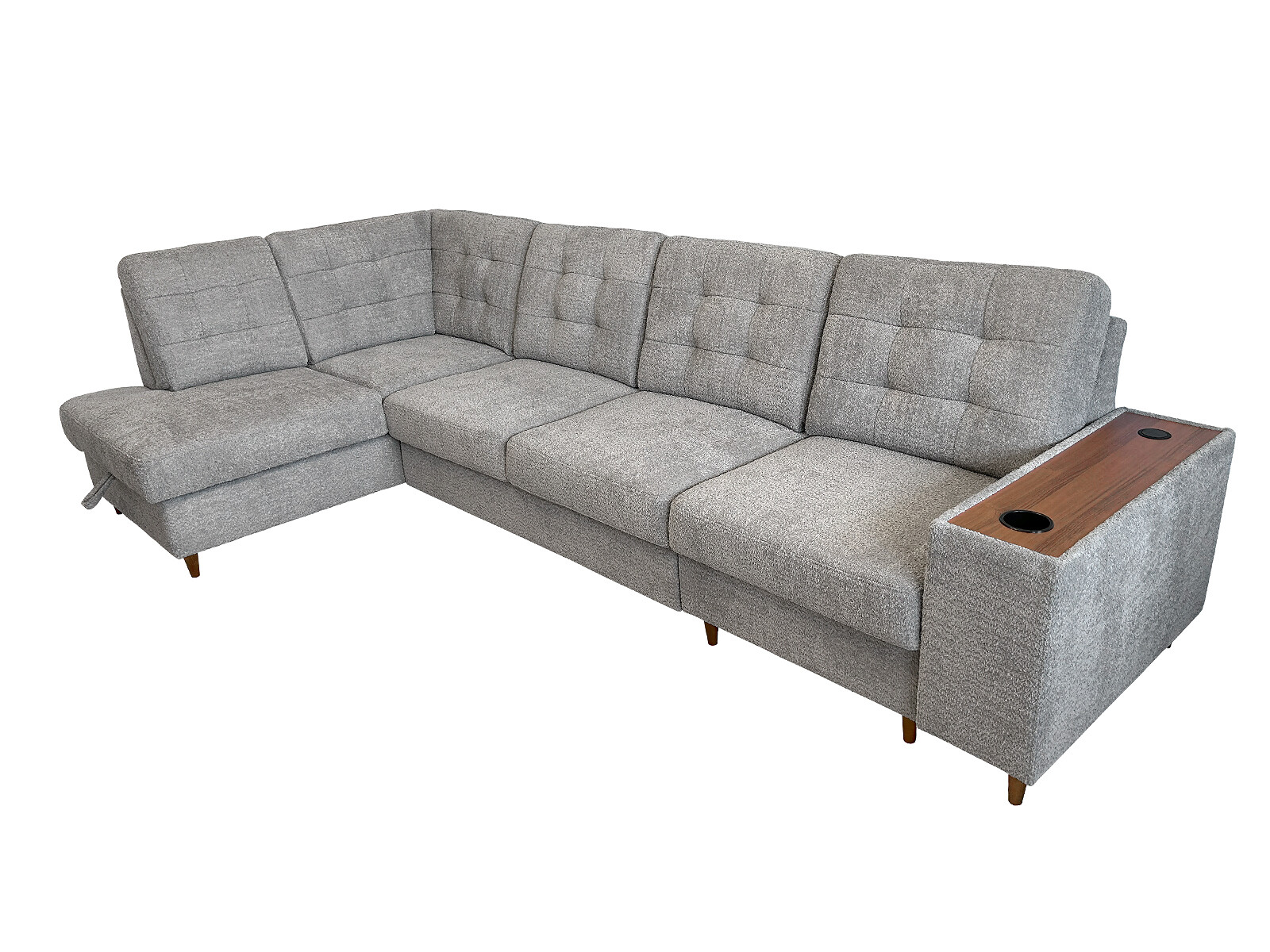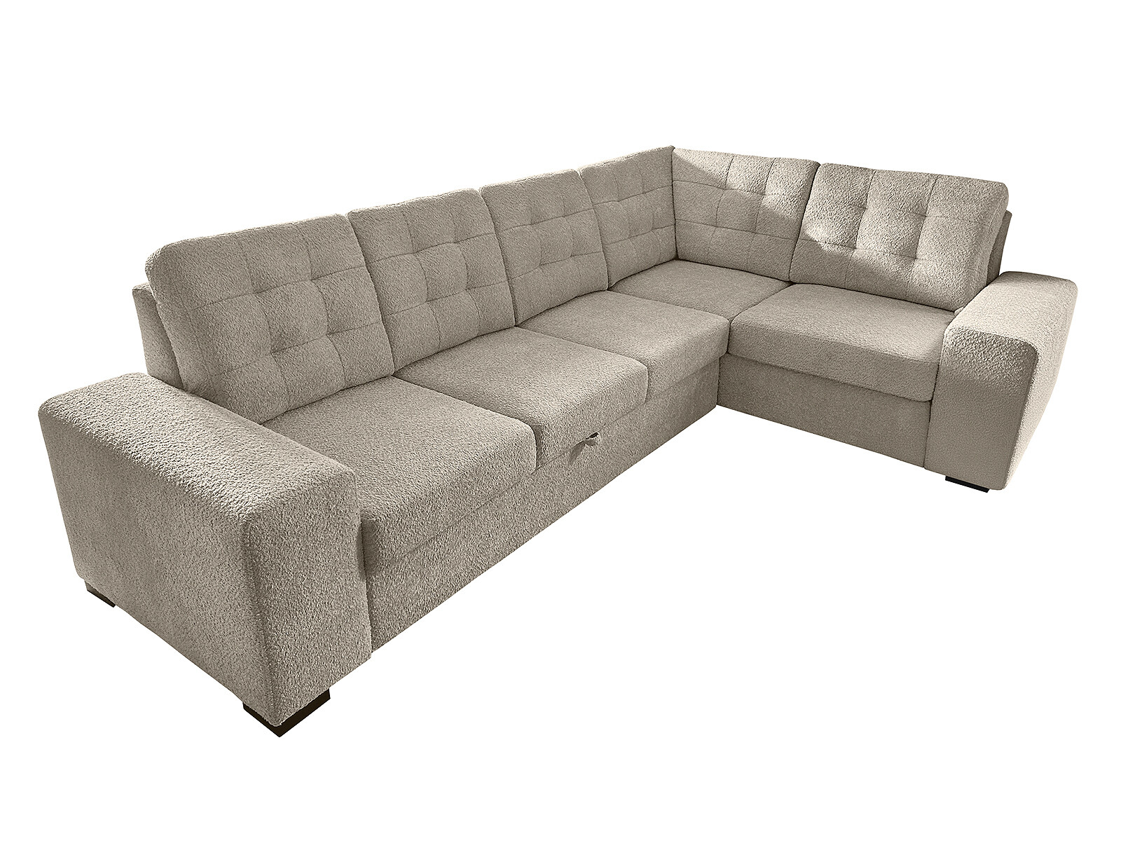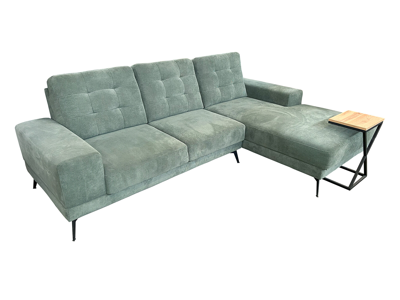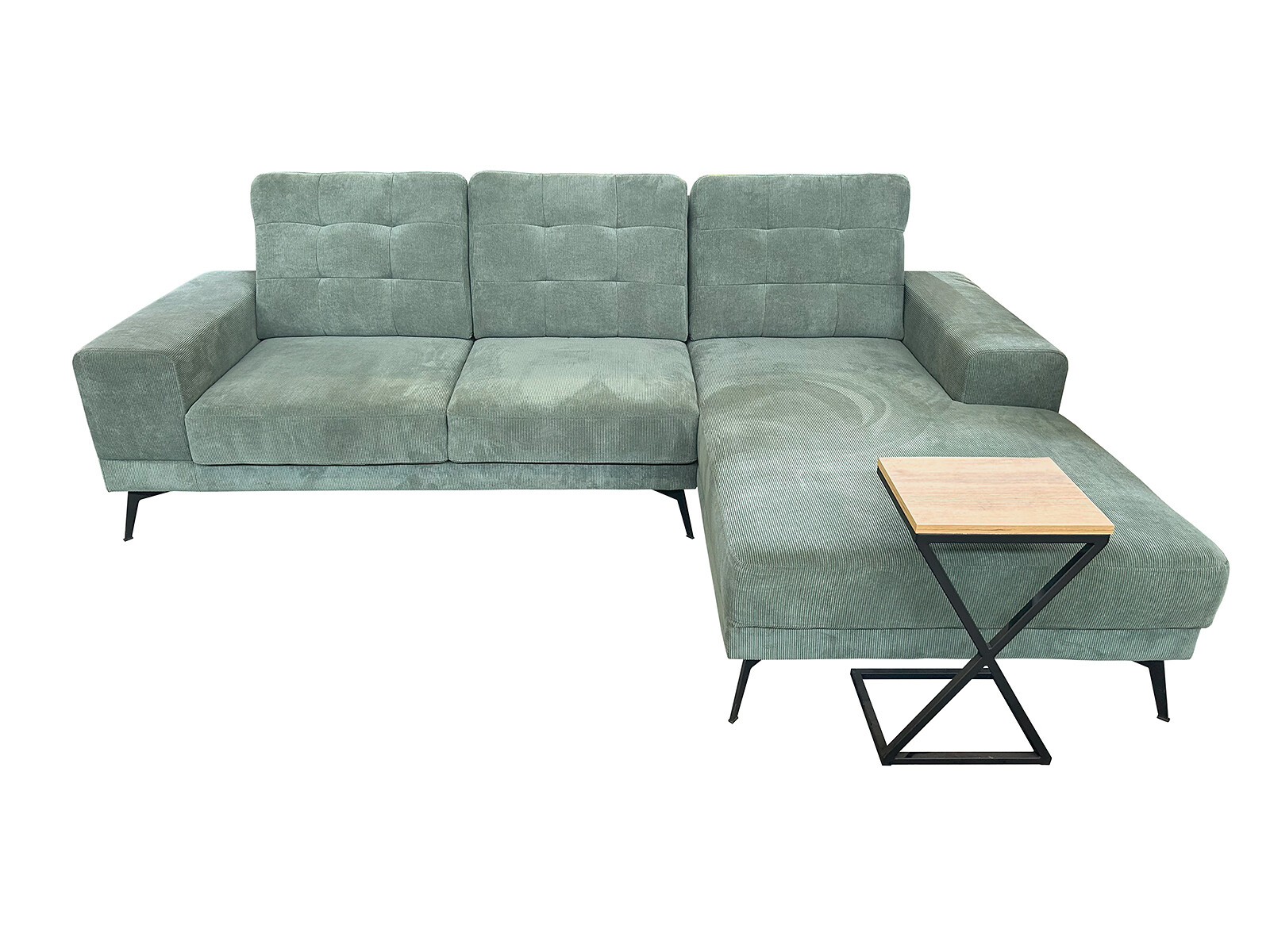 Borgaro to designerska propozycja narożnika o nowoczesnej formie, zapewniająca wygodę i styl w każdym salonie. Zielona tkanina nadaje wnętrzu modnego charakteru, a uniwersalne proporcje pozwalają na wiele możliwości aranżacyjnych.