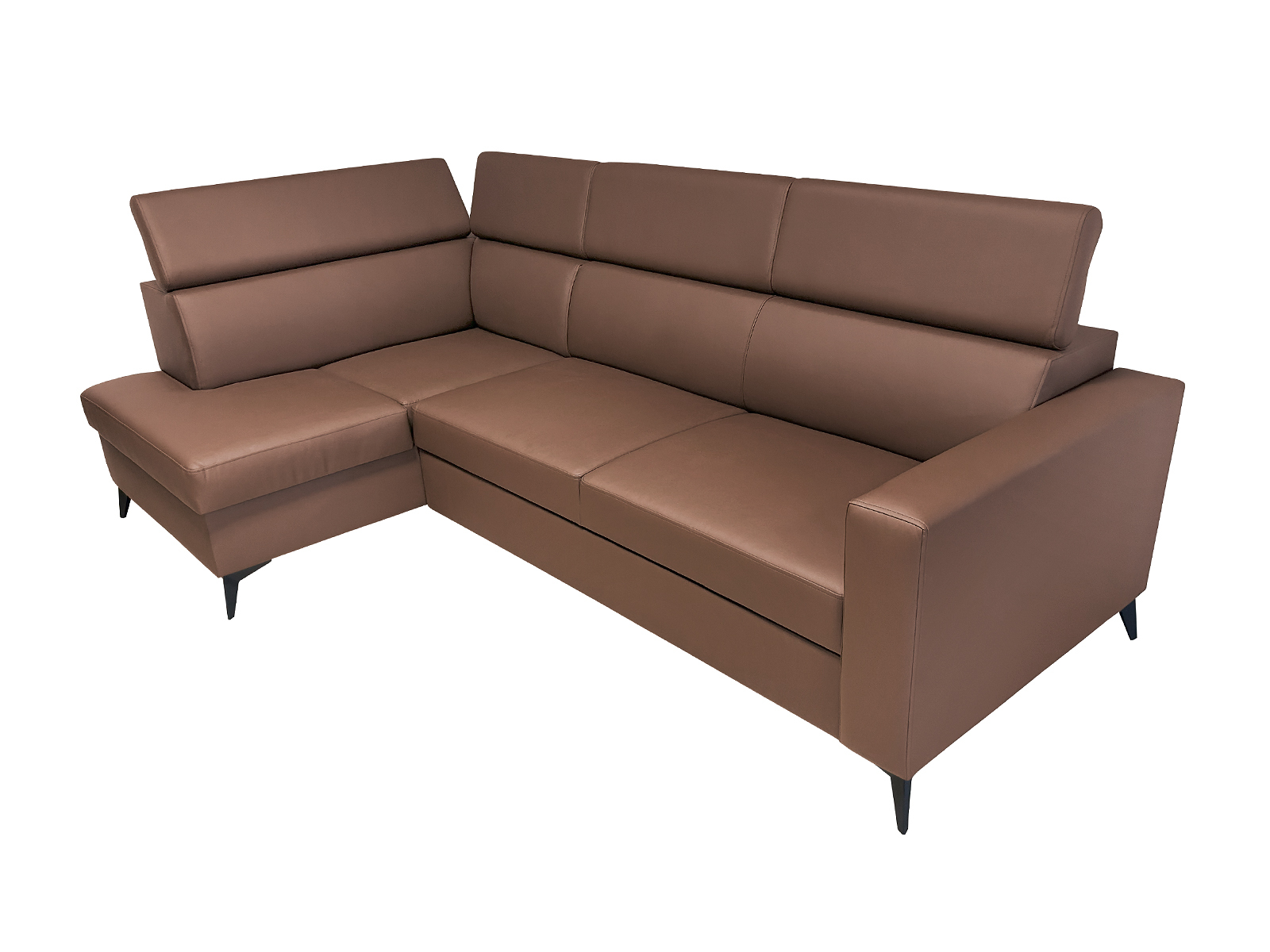 Monza to nowoczesny narożnik wykonany z wysokiej jakości eko-skóry, łatwej w utrzymaniu. Prosta bryła i ruchome zagłówki sprawiają, że mebel jest zarówno wygodny, jak i praktyczny na co dzień.