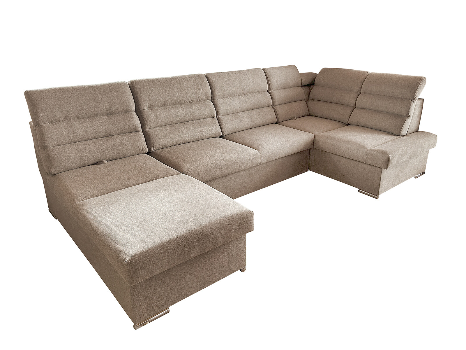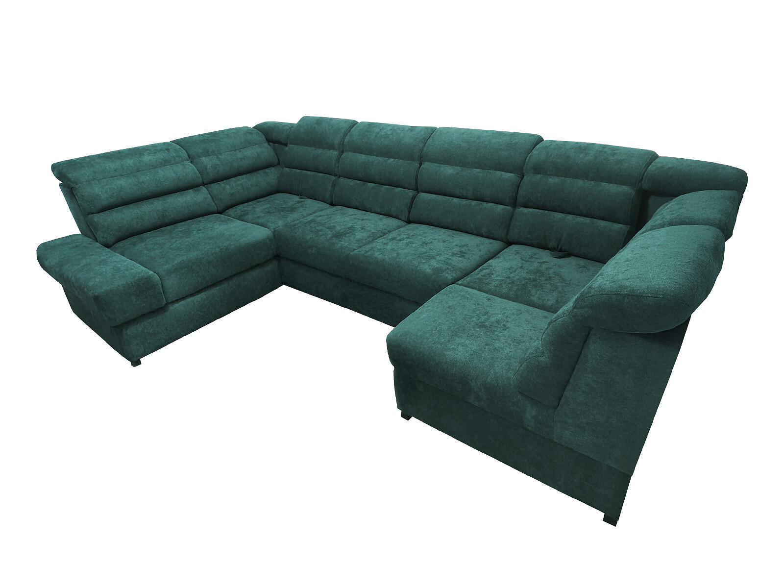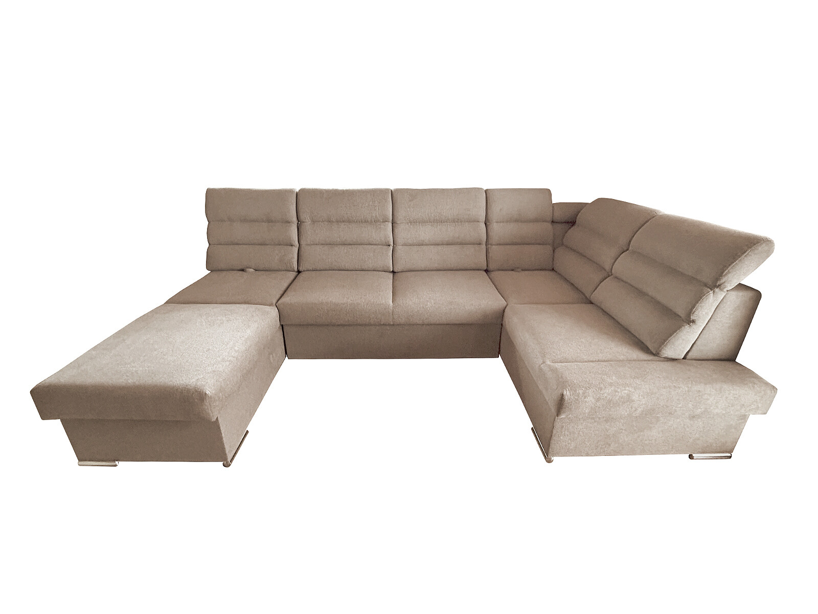 Ekskluzywny narożnik w kształcie litery „U” to propozycja dla osób ceniących najwyższy komfort i oryginalny design. Przemyślana konstrukcja pozwala na idealny relaks, a materiały wykorzystane do produkcji gwarantują trwałość na lata. Dwie funkcje relaks oraz duże powierzchnie spania czynią ten narożnik centralnym miejscem wypoczynku każdego salonu.