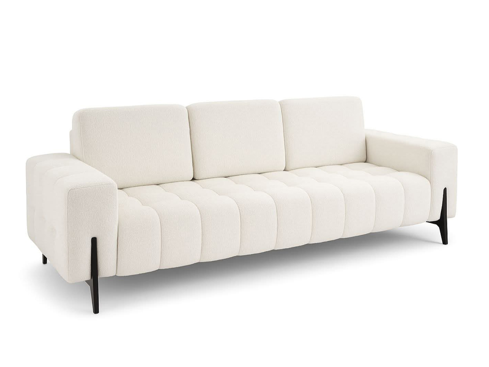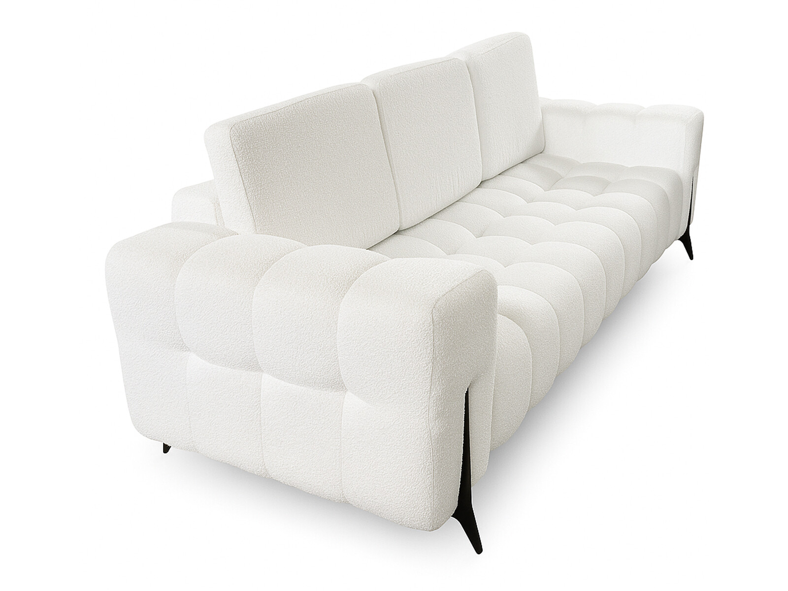 Sofa Lusso to połączenie nowoczesnego designu i ponadczasowej elegancji. Jej wyjątkowy charakter podkreśla tapicerka z miękkiej, przyjemnej w dotyku tkaniny bouclé w odcieniu czystej bieli a pikowania nadają sofie efektowną, przestrzenną formę, szerokie boki zapewniają maksymalny komfort użytkowania.