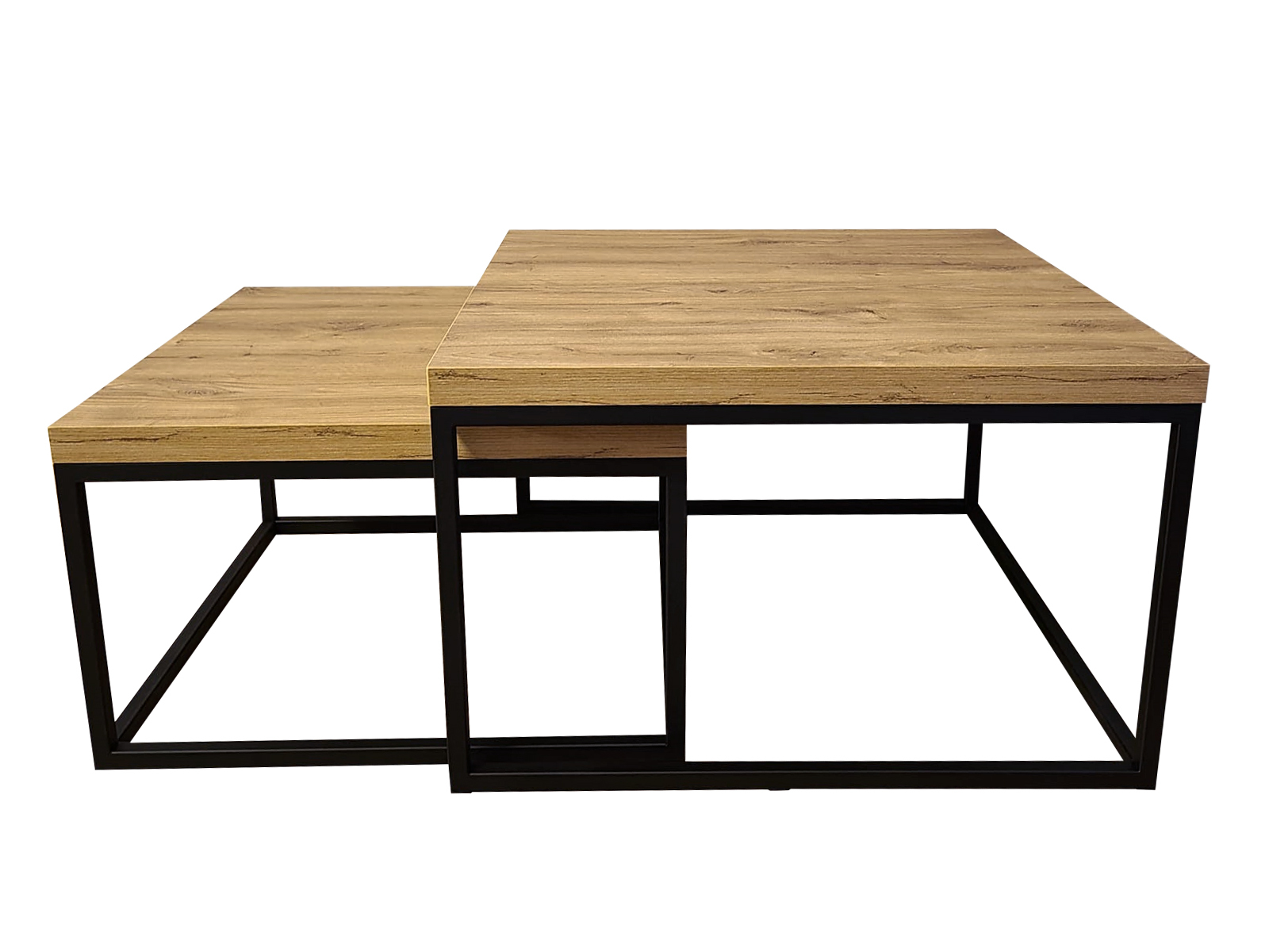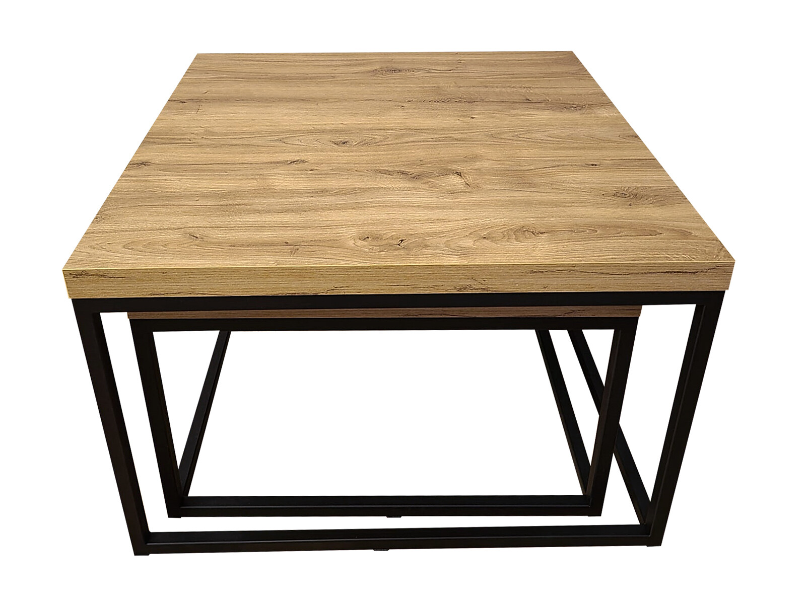 Stolik S2 wyróżnia się blatem z płyty laminowanej w dekorze dąb odwieczny, który wprowadza do pomieszczenia ciepłą, naturalną atmosferę. Smukła stalowa rama wykonana z profilu 2x2 cm podkreśla subtelność projektu, oferując jednocześnie trwałość i pewność użytkowania.